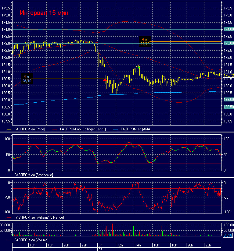 4. Благодаря анализу результатов работы одновременно четырёх, проверенных временем, индикаторов–осцилляторов, встроенных в QUIK: AMA, Bollinger, Stochastic, Williams с уникальными настройками, можно получать надёжные сигналы на покупку–продажу по всем вашим инструментам, что позволит существенно улучшить качество торговли.