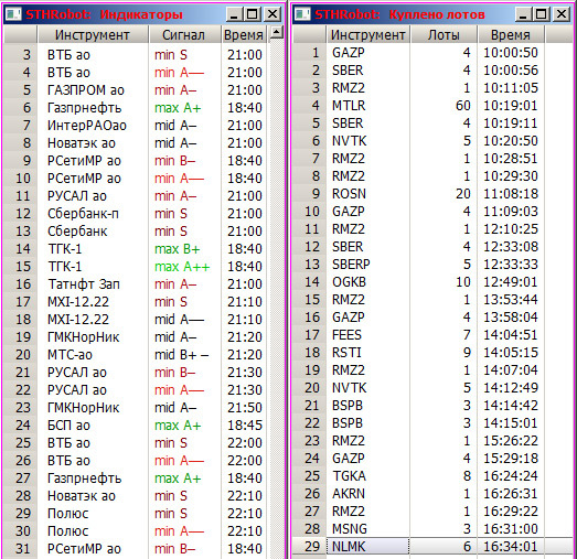Особенно полезны эти сообщения при использовании Телеграм и мобильного бота. STHRobot передаёт сигналы в Телеграм о всех покупках–продажах и наиболее важную информацию от индикаторов. С помощью мобильного телефона вы будете дистанционно в курсе событий о происходящем в QUIK на компьютере.